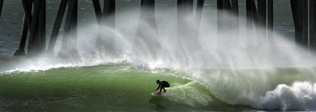 A man catches a wave intensified by the Santa Ana winds. By Daniel A. Anderson/Orange County Register